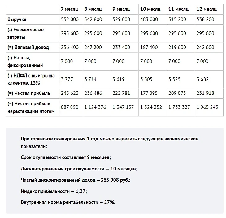 Инвестиционные затраты на открытие данного бизнеса составляют 1 345 000 руб.