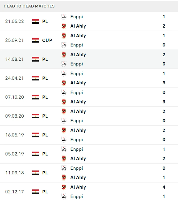 Статистика очных встреч «Аль-Ахли» - «ЕНППИ»