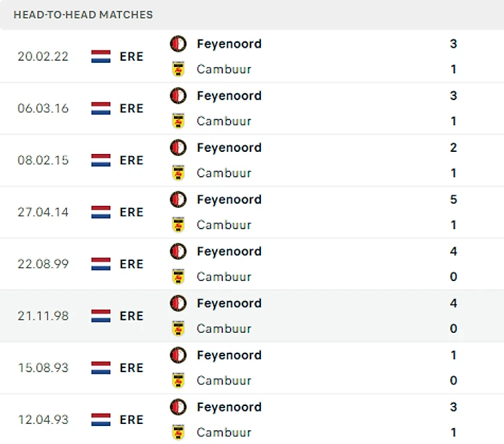⚡💥 В последний раз «Камбюр» отнимал очки у «Фейеноорда» в 1994 году, когда в Леувардене была ничья 0:0. С тех пор «Камбюр» проиграл 13 раз в тринадцати официальных играх (дома и на выезде).