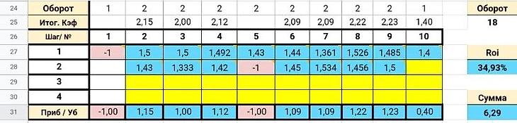 2й тайм показал фактический проход 83% за прошедшую неделю. Не большой откат был ожидаем и мы про него говорили. Участники столкнулись с не большими затыками в кубковых матчах. По этому мы всегда рекомендуем использовать 0.5 от флэта на подобные игры. Зато чемпионаты 1х и 2х лиг, ожидаемо порадовали по Черри пик. Так же хорошо шли фермы ( система ставок для получения прибыли, с помощью качественно подбираемых в лайве событий из списка. Которые вносятся в таблицу и идут горизонтальным экспрессом. Хотите узнать больше, спросите).