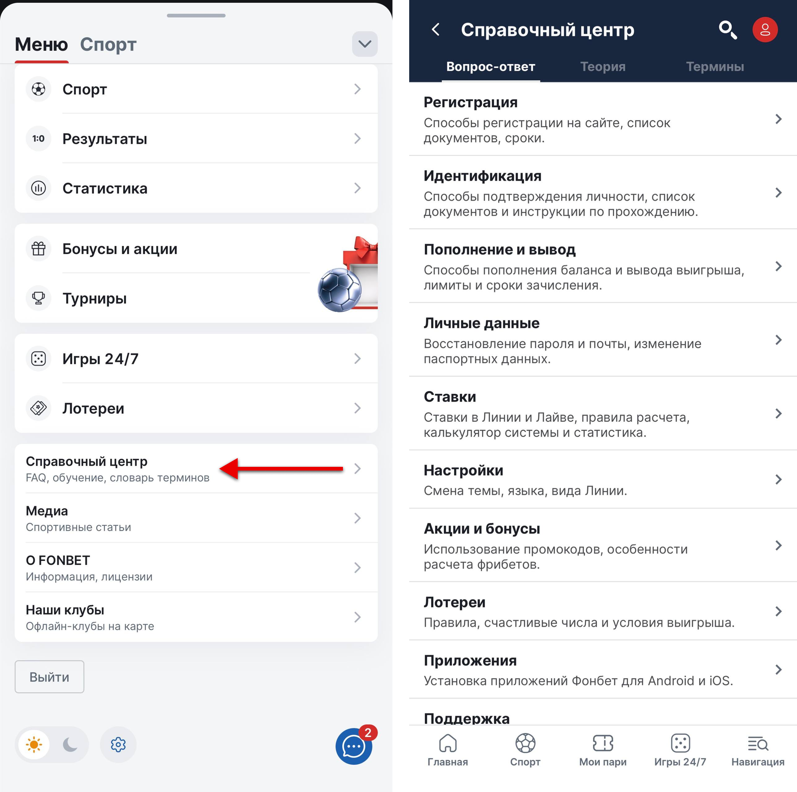 Справочный центр «Фонбет»