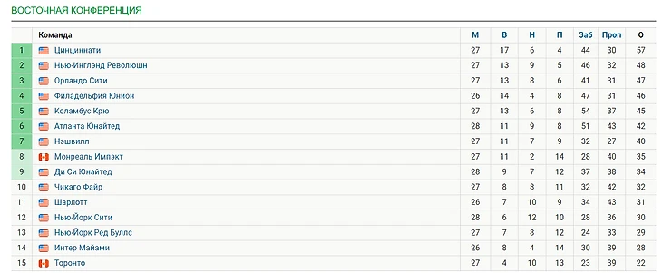 • Матчи дома: «Торонто» (15-е место на Востоке, далее – только команды с Востока), «Нью-Йорк Сити» (12), «Цинциннати» (1), «Шарлотт» (11).