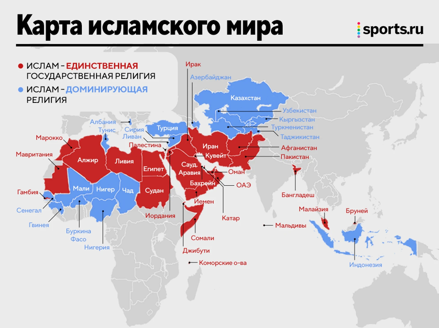Ставки на спорт запрещены в большинстве стран, где ислам – государственная религия, таких больше 30.