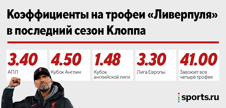 Перед сезоном букмекеры оценивали шансы «Ливерпуля» на квадрупл – нереальной цифрой в 1501.00. Звучит как шутка, но в конце сезона могут поспаться новости о том, как жители Ливерпуля, Оклахомы или Самарской области сорвали куш таким долгосроком. Сейчас цифра стала более приемлемой, но и так можно неплохо пошуметь, даже с более «скромными» 41.00.
