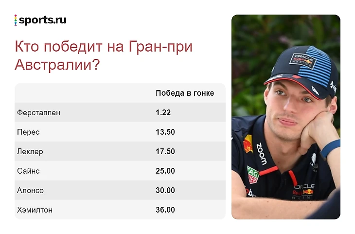 На победу Ферстаппена дают 1.22, ближайший преследователь Перес с 13.50! Кажется, тут снова все ясно.