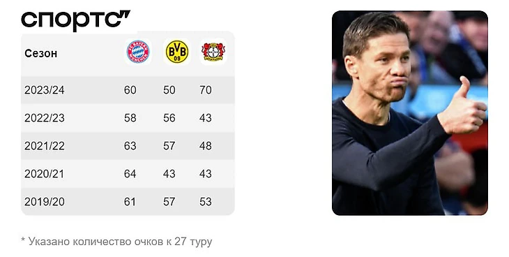 Мы взяли количество очков к 27 туру за последние пять сезонов в Бундеслиге.
