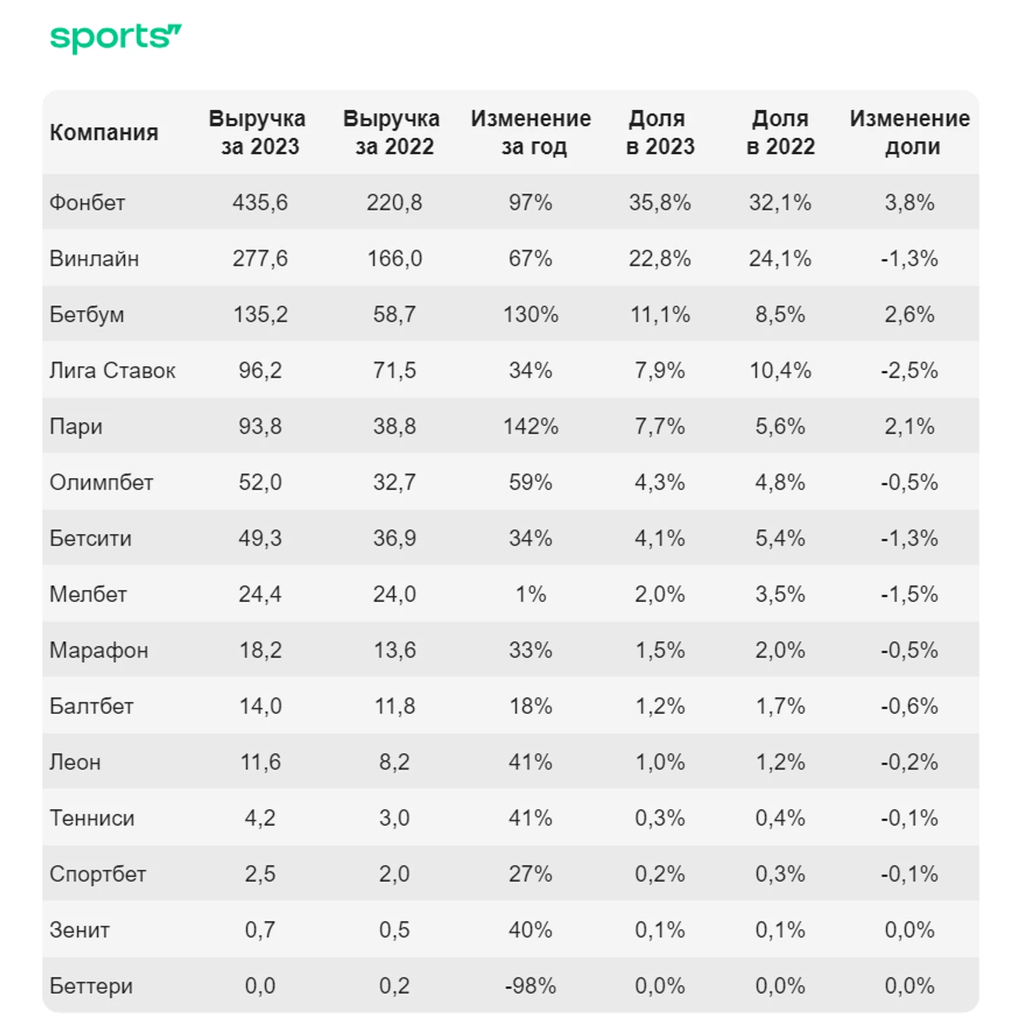 «Фонбет» – лучший среди букмекеров России, забрал более трети рынка. А главный рост выручки – у «Пари» и «Бетбума»