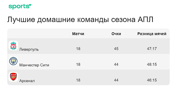 Еще одна интрига в АПЛ – кто же лучшая домашняя команда? «Ливерпуль», «Сити» и «Арсенал» – почти вровень