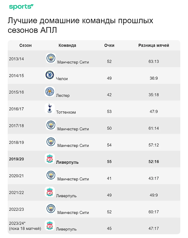 Кто лучше остальных играет дома в АПЛ? А что, тут тоже есть интрига.