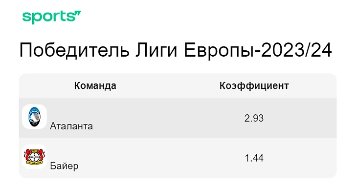 На победу «Байера» в основное время предлагается коэффициент 1.86, выигрыш «Аталанты» идет за 4.40, ничья за 3.80.