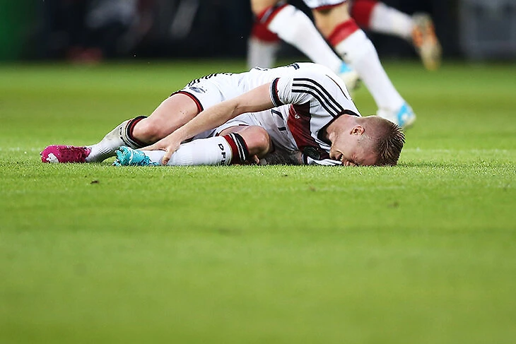 Главная боль в карьере Марко Ройса. Немец не просто был важным игроком в чемпионской системе Йоахима Лева – лидером. Ройс оформил восемь результативных действий в шести матчах на пути в Бразилию. Германия по коэффициентам букмекеров значилась в тройке лучших, уступая только Бразилии и Аргентине. На победу немцев на турнире давали 6.50. Тем обиднее, что красивый сюжет оборвался за несколько дней до старта турнира в товарищеской встрече с Арменией…