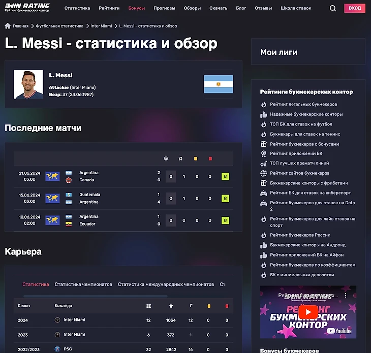 Разберём имеющиеся данные на примере статистики Леонель Месси:
