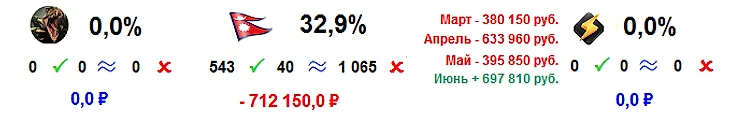 Нормально эндшпильнули. Не отъехали.Били аккуратно, но сильно)). Был какой-то план и мы его придерживались)). Плюс/минус 6 голов на Филиппинах,6 в Сингапуре и фора Саутленд Шаркс. Несмотря на мощный слив в последнюю неделю ( - 1 053 300 !), как бы это странно не звучало, а Июнь мы таки можем занести в актив))). Да ещё в какой!)) Прикиньте сколько мы выигрывали?)))