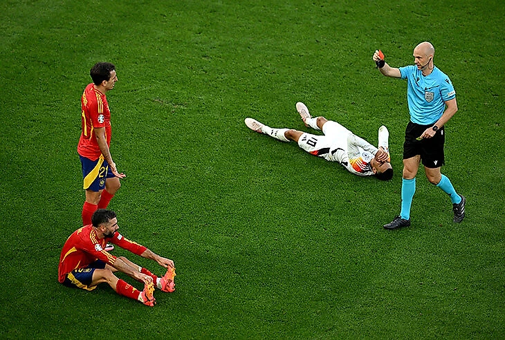 Матч Испания – Германия вошел в историю не только за счет эффектной развязки, но и арбитра Энтони Тэйлора. В социальных сетях уже гуляет шутка о том, что англичане на Евро в любом амплуа справляются с задачей по снижению качества игры. Судейство будет обсуждаться очень долго.