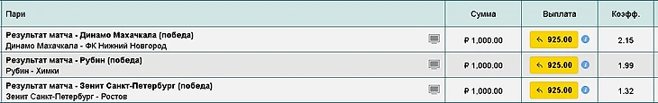 Матч Динамо Мх - Пари НН я уже выбрал, потому остается выбрать 2 матча, на которые я буду ставить.