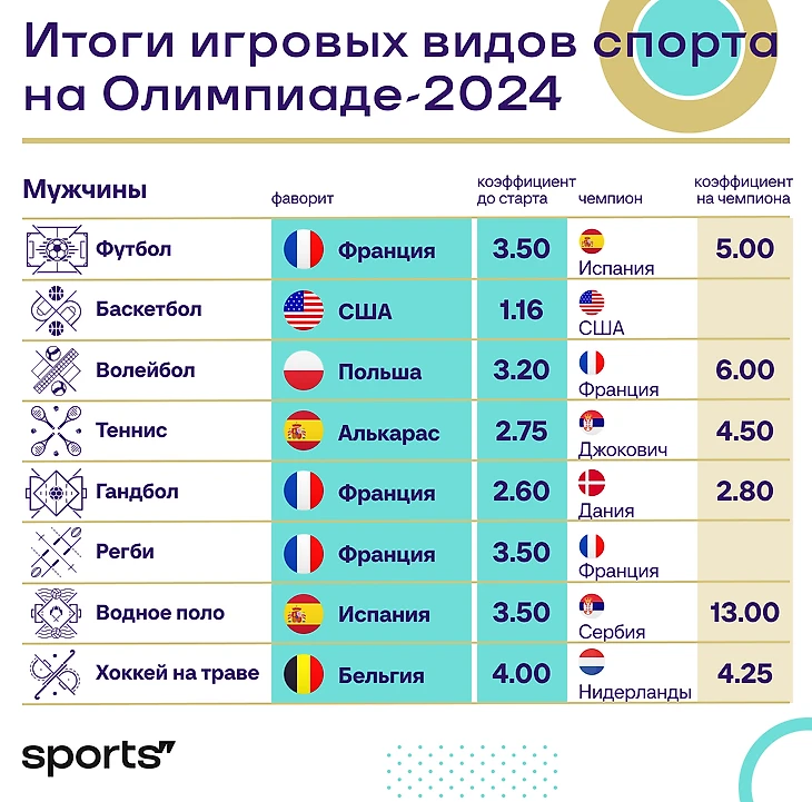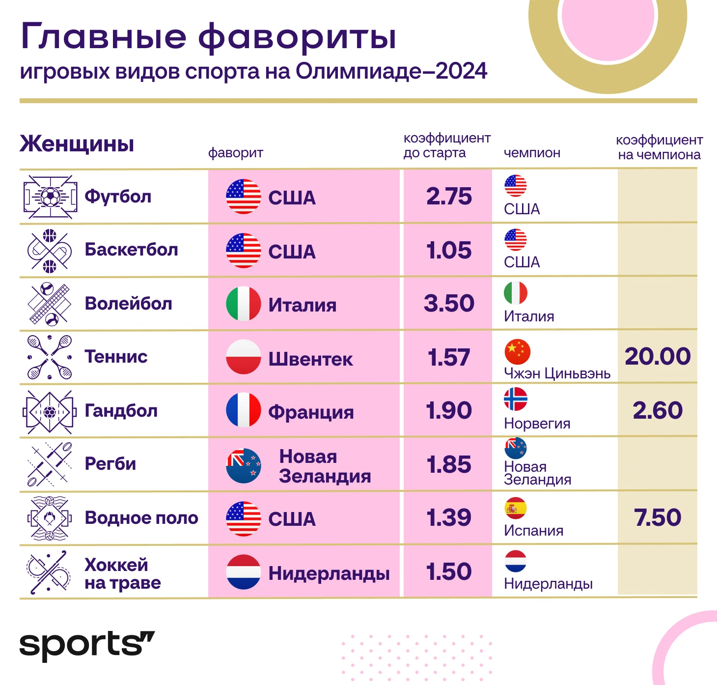 Перед Олимпиадой-2024 мы узнали, кого букмекеры считают фаворитами в игровых видах спорта. Что сбылось, а что нет?