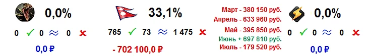 Ладно пятница/суббота. Там ещё туда-сюда было (+/- 20 к) , но вчера погусарили мы знатно конечно). Как вам меня в дерби с ОЗ+ТБ 2,5 удалось затащить да ещё и с догоном на сотку знает лишь один Абрам Дюрсо)))). Ладно, ладно - сам виноват. Да и выбирал я вчера плохо. А ведь минздрав предупреждал)))). На самом деле за уикэнд мы просадили не так уж и много (около 280 к). Бывало круче. Намнооооого круче)))). Но тем не менее заветная сумма уже замаячила на горизонте))).