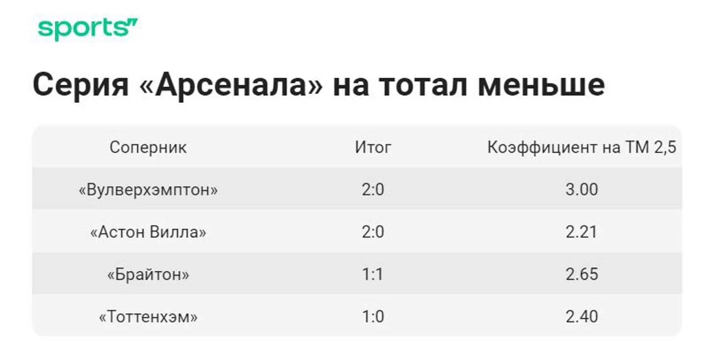 Удивительная статистическая трансформация команды Микеля Артеты, к которой еще не адаптировались букмекеры. В каждом матче АПЛ лондонцам дают низкие коэффициенты на тотал больше, но они никогда не проходят.