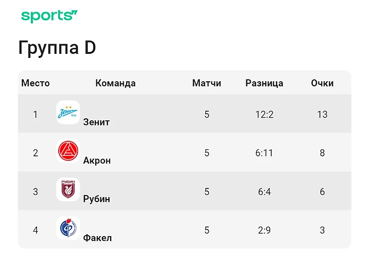 Группа D: «Акрон» и «Рубин» разыграют путевку в Путь РПЛ