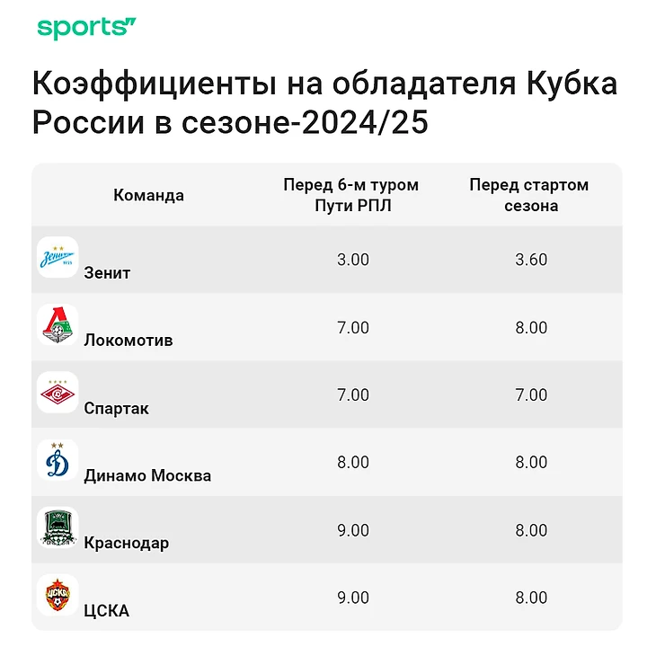 Что с коэффициентами? «Зенит» закрепился в лидерах, «Локо» сравнялся со «Спартаком»