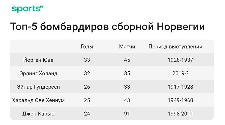 Юве, несмотря на фамилию, никак не был связан с «Ювентусом». Футболист всю карьеру провел в основном в Норвегии, забив за сборную 33 гола. Главное достижение – бронзовые медали Олимпийских игр в 1936 году. Эрлинг Холанд уже наколотил 32 гола. Интересно, что Оле-Гуннар Сульшер в 67 матчах забил лишь 23 мяча.