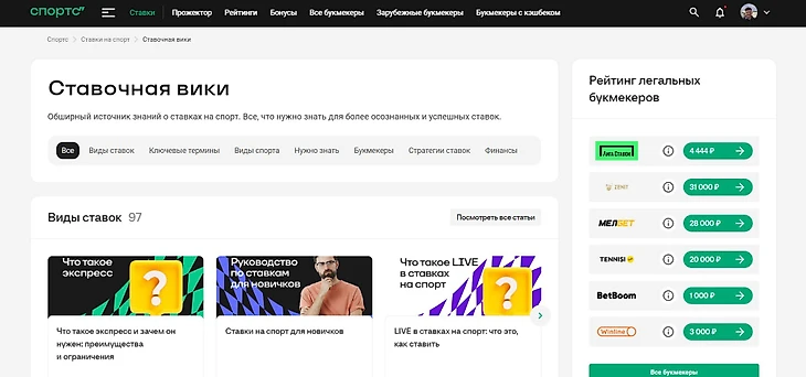 Раздел «Ставки» делает еще один шаг, чтобы помочь сделать беттинг более осознанным. Мы запустили Ставочную вики – новый раздел, где собрано все самое важное об устройстве ставок.