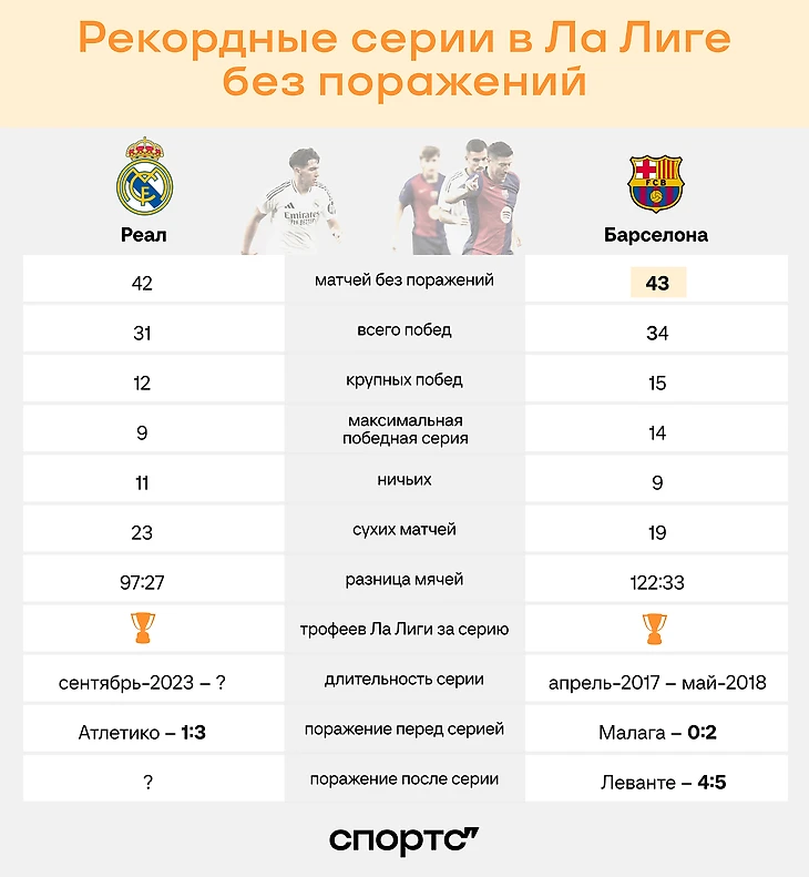 Сейчас 42: чтобы повторить – нельзя проигрывать «Барсе», которая как раз держит рекорд.