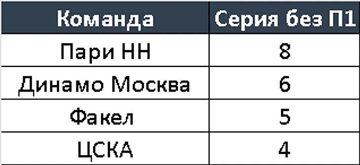 Как видим, серии без П1 есть у команд: