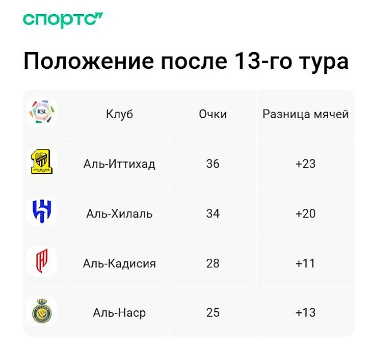 «Аль-Наср» отстал от неожиданного лидера уже на тринадцать очков – это приговор для местной лиги. За тринадцать туров «Аль-Иттихад» потерял всего три балла.