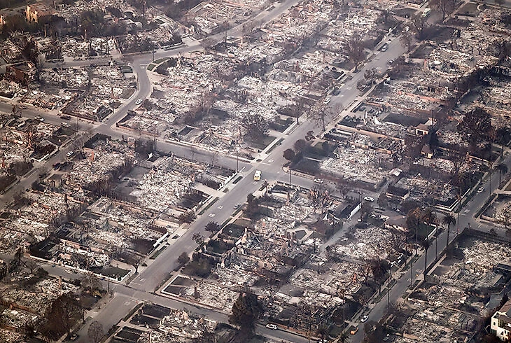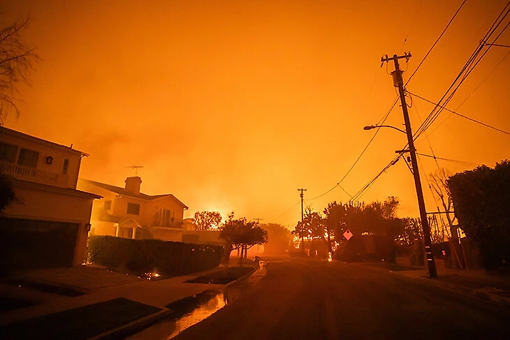 В Лос-Анджелесе продолжает бушевать исторический лесной пожар. Уже свыше 200 тысяч человек подлежат немедленной эвакуации. Суммарно было зафиксировано восемь очагов, три удалось локализовать. На утро воскресенья сообщалось об общей площади опасной зоны в 15 тысяч гектаров.