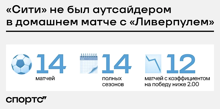 Против «Ливерпуля» «Сити» не был домашним аутсайдером в АПЛ на протяжении 14 матчей – с сезона-2009/10 (27-й тур).