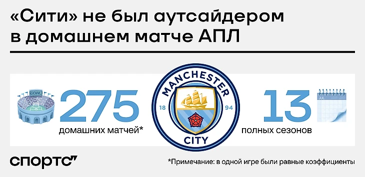 «Манчестер Сити» не был домашним аутсайдером в АПЛ 275 матчей