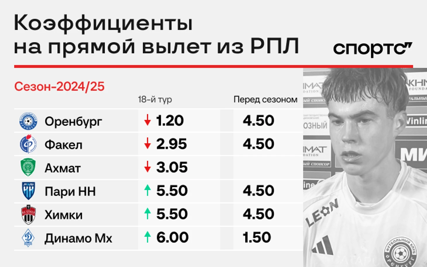 Но за зиму коэффициенты не тронули только «Оренбург» и «Химки». А у остальных четырех команд они незначительно выросли.
