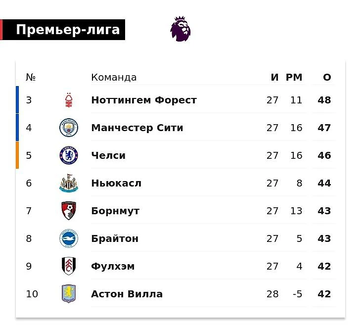 Фаворит на пятую позицию в лиге – «Ноттингем». «Лесников» ставят выше «Ньюкасла», несмотря на одно набранное очко в трех предыдущих матчах. К «Борнмуту», «Брайтону» и «Астон Вилле» всерьез не относятся – двузначные коэффициенты на всех.