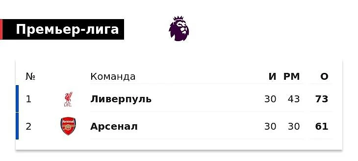 При равенстве очков «Ливерпуль» на 99% обойдет «Арсенал» по разнице мячей. Сейчас +13 в пользу лидера.