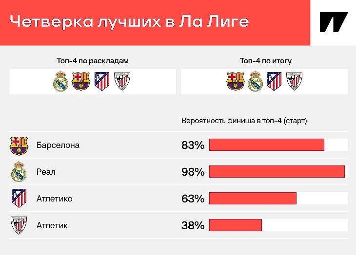 Топ-4 Ла Лиги: стопроцентное попадание, другие претенденты провалились