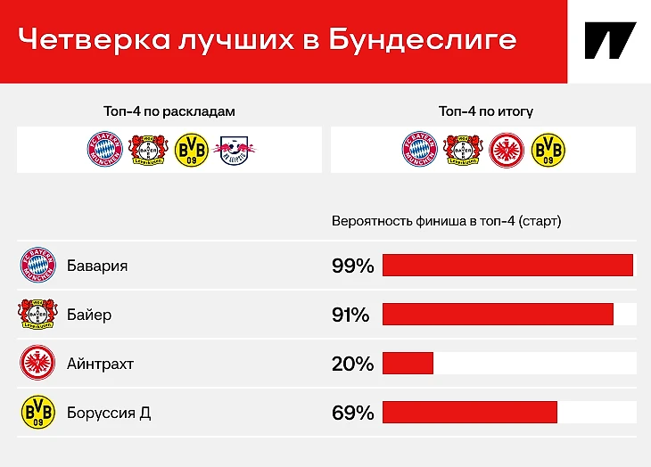 «Баварию» и «Байер» легко было записывать в четверку еще до старта, так же считали и букмекеры, которые перестали раскидывать на них коэффициенты еще до конца первого круга.