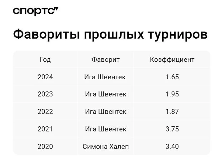 ● Ига Швентек внезапно попала в кризис на любимом покрытии. Букмекеры понизили вероятность победы действующей чемпионки и повысили шансы остальных. Как раз больше всего выиграли Соболенко и Андреева.