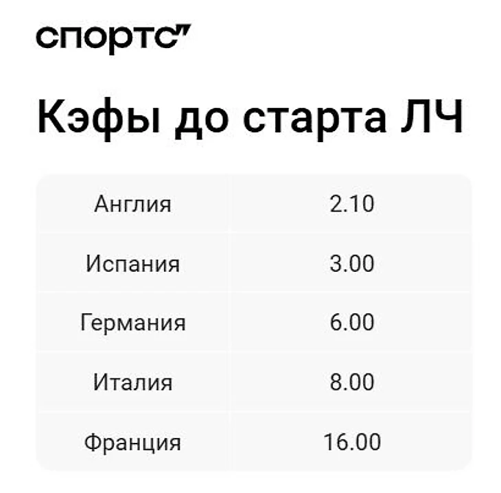 А вот Италия и Франция оценивались существенно ниже. Логика аналитиков была понятной: от Франции мог выстрелить только «ПСЖ», а у Италии, несмотря на пять команд, стабильностью располагал лишь «Интер».