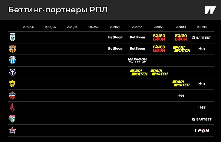 Остальные легальные букмекеры в РПЛ пока не представлены. В прошлом сезоне Leon сотрудничал с «Оренбургом», сейчас клуб без беттинг-партнера.