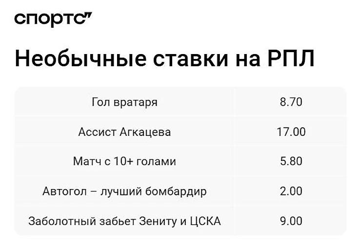У букмекеров сейчас есть вера в лучшего бомбардира: 1.72 сыграет, если автоголов в РПЛ все же будет меньше, чем точных ударов у лучшего бомбардира.