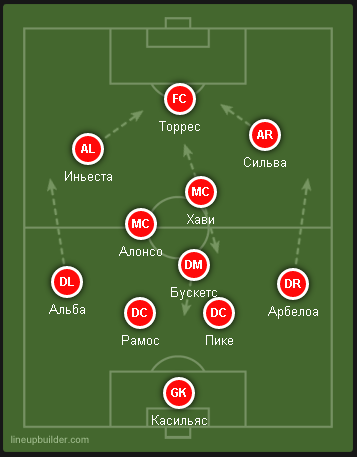 Проблемой для Дель Боске может стать и тот факт, что он априори не может включить в стартовый состав всех своих плэймейкеров - Бускетс, Алонсо, Хави, Иньеста, Фабрегас, Касорла, Мата - все они по ходу сезона заслужили право играть в основе. И не попадание кого-либо в состав может послужить разбалансировке. Пример разбалансировки в атаке мы вчера наблюдали на сборной Голландии, где толком не проявили себя ни Ван Перси, ни Хунтелаар, отчяно сражавшиеся за место в основе на тренировках и в товарищеских матчах.