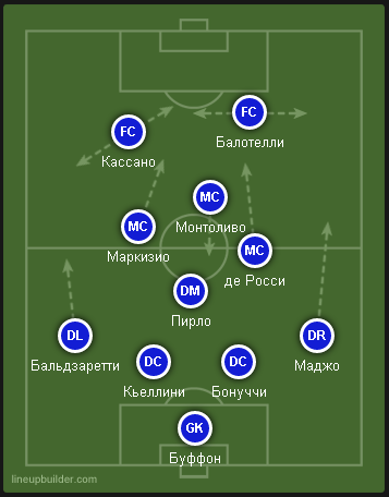 Проблема сборной Италии заключается в том, что отсутствуют игроки, которые способны растянуть полузащиту, я говорю о вингерах. Вся игра Итальянце очень предсказуема, мяч крутится вокруг четырех игроков центральной зоны. Из этого следует, что тактика на игру у Пранделли весьма ограничена, все что он может предложить это только игра по схеме 4-3-1-2 или 3-4-1-2.