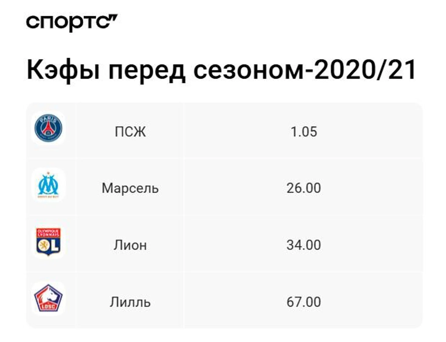 Возможно, «ПСЖ» все же переоценивают. Сезон после требла – особое испытание, а конкуренты во Франции соскучились по трофеям. Неплохой пример краха фаворита – сезон-2020/21. Тогда будущий чемпион «Лилль» до первого тура стоял четвертым с коэффициентом 67.00.