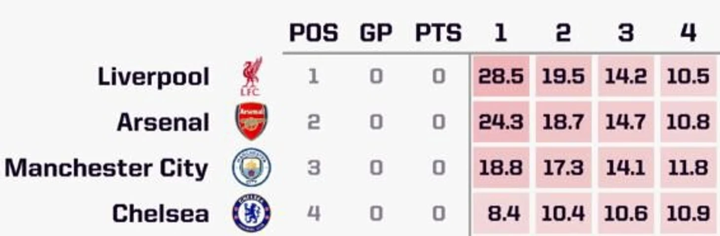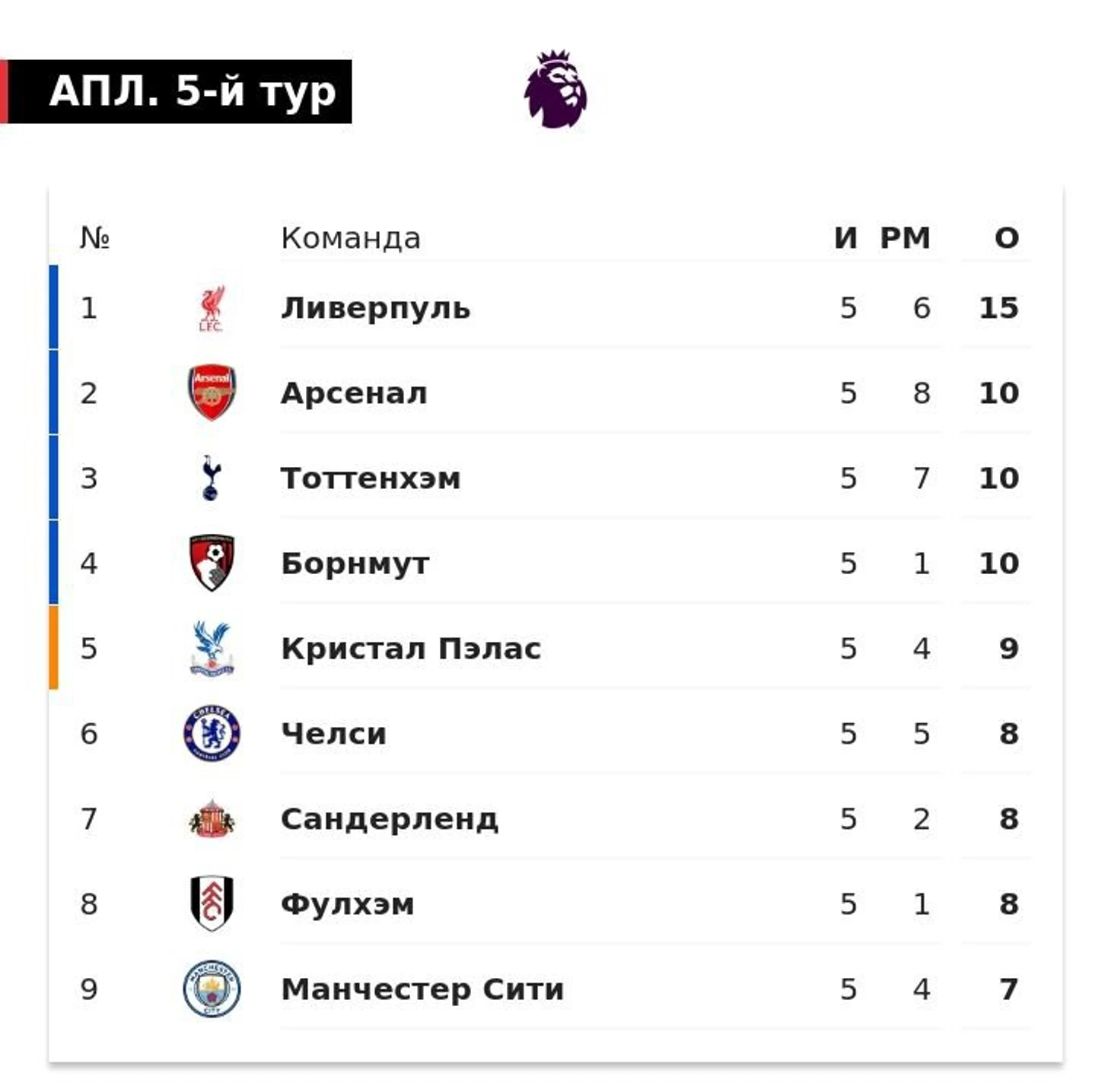 1) «Ливерпуль» на 1-м месте с отрывом в +5 очков от ближайшего преследователя.