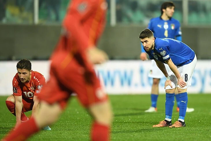 В стыковом мини-турнире намечался особенный финал – против Португалии, но до не него итальянцы не дошли. В полуфинале фаворита остановила Северная Македония: Джанлуиджи Доннарумма не справился с дальним ударом Александра Трайковского.