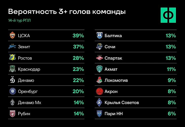 ЦСКА много забьет, «Спартак» и «Локо» недооценили, у «Балтики» недобор. Что будет в туре РПЛ: вероятности