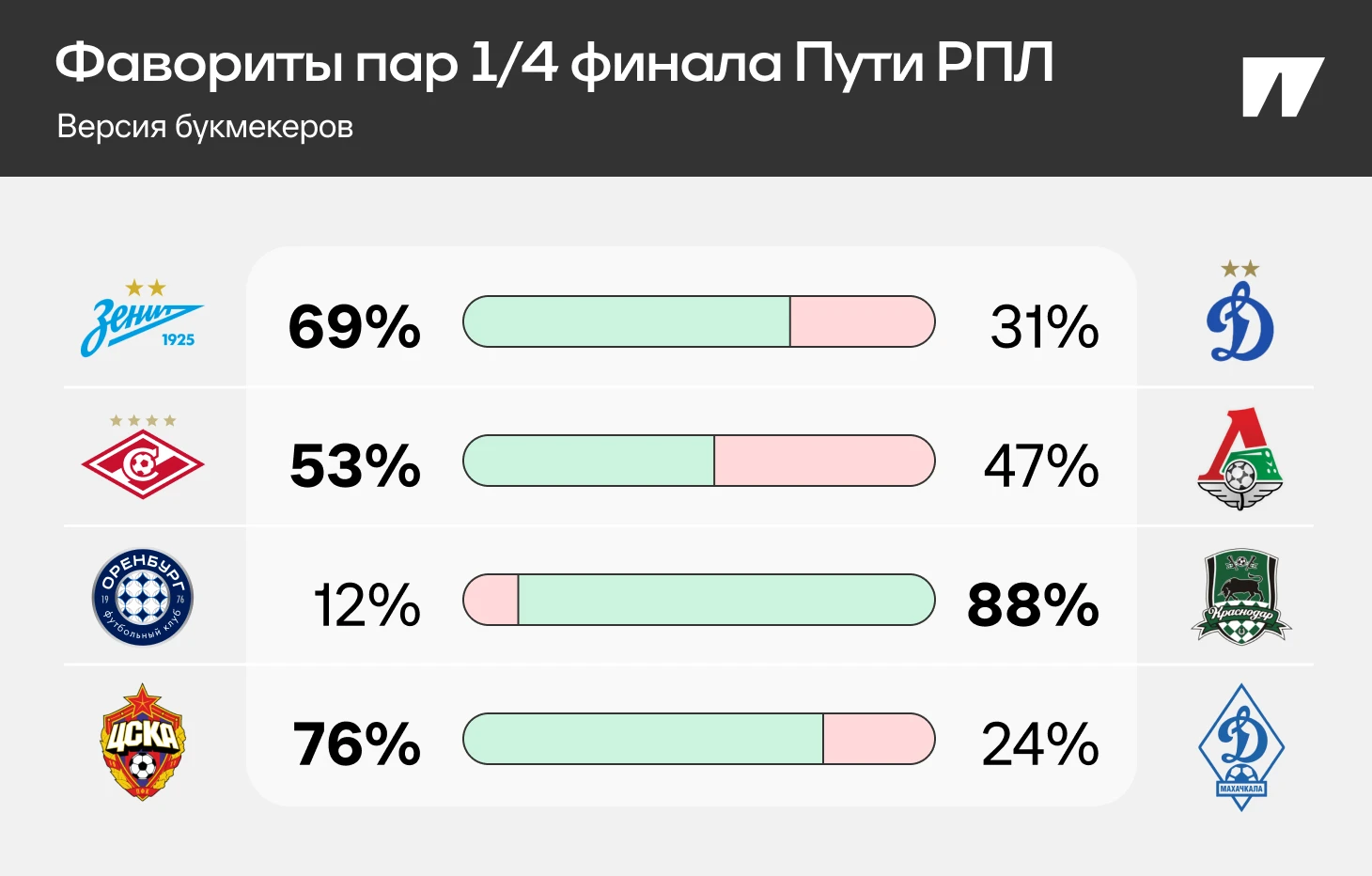 Плей-офф Кубка: сильно возросли шансы «Зенита» и ЦСКА, «Спартак» – небольшой фаворит против «Локо»