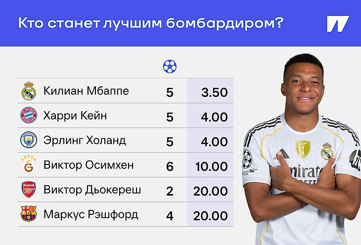 У бомбардиров тоже весело. Виктор Осимхен сделал хет-трик в матче «Галатасарая» с «Аяксом» (3:0) и единолично возглавил гонку. При этом он не входит даже в топ-3 фаворитов.