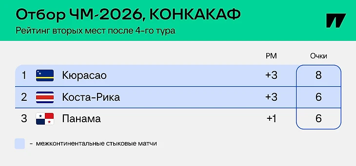 ● Две команды, занявшие вторые места, отправятся в межконтинентальный плей-офф.